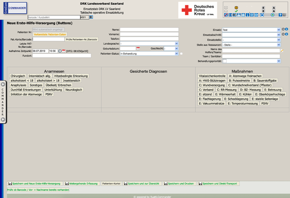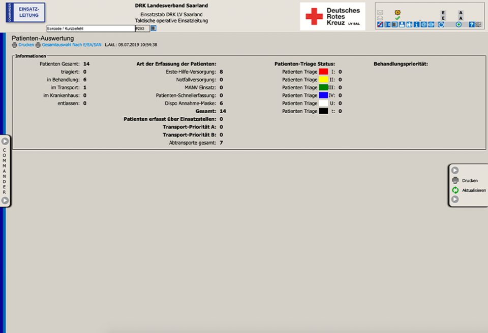 Managementmodul für Erste-Hilfe, Notfallversorgung, MANV (Massenanfall von Verletzten), Annahme und Disposition von Notfällen, Schnellerfassung von Patienten, Rettungshundestaffel-Einsatzmodul, Transportorganisation, Betreuungsmodul für Evakuierungen inklusive Materialmanagement und umfangreichen Statistiken.