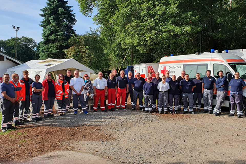 Zukünftig werden unsere Einsatzkräfte auch noch weiter vor Ort gebraucht werden: Unter anderem zur Unterstützung des DRK-Teams im Verpflegungszentrum 10.000 im Ort Grafschaft, wo erfolgreich jeden Tag zweimal 10.000 Mahlzeiten für die Betroffenen in den Flutgebieten und auch die vielen Helferinnen und Helfer zubereitet, bereitgestellt und vor Ort gebracht werden. Außerdem werden wir weiterhin in der Psychosozialen Notfallversorgung für die Betroffenen vor Ort, aber natürlich auch nachbereitend für unsere Einsatzkräfte aktiv sein.