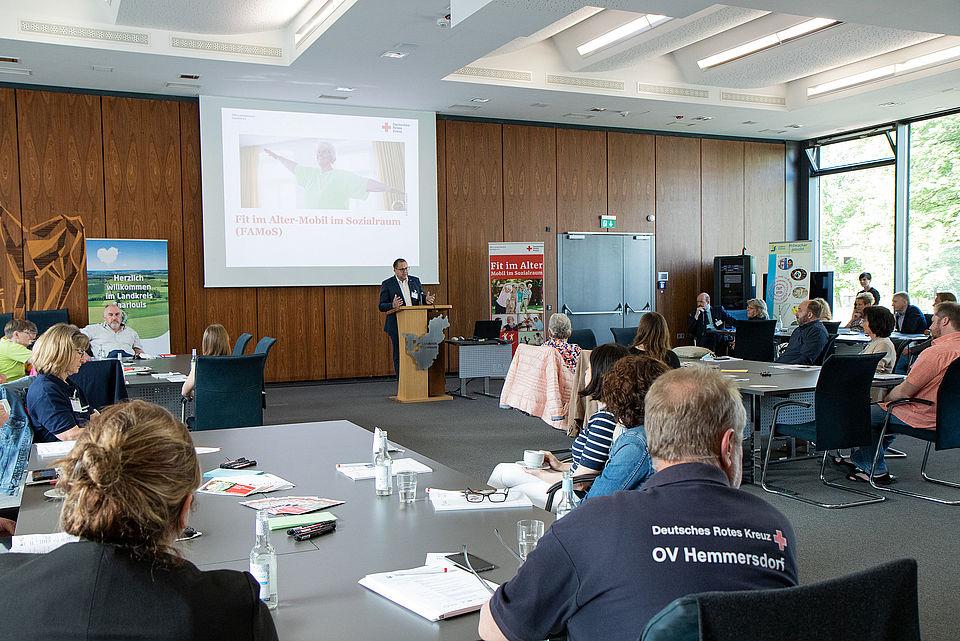 Mit Unterstützung der Gesetzlichen Krankenversicherungen (GKV) bietet das Deutsche Rote Kreuz (DRK) das Projekt „Fit im Alter – Mobil im Sozialraum“ (kurz: FAMoS) an. Konkret geht es um die Motivation zur mehr sportlicher Aktivität durch Hausbesuche und um wohnortnahe Outdoor-Bewegungsprogramme. Das Projekt soll ältere Menschen ansprechen, die weder chronisch krank noch pflegebedürftig sind.