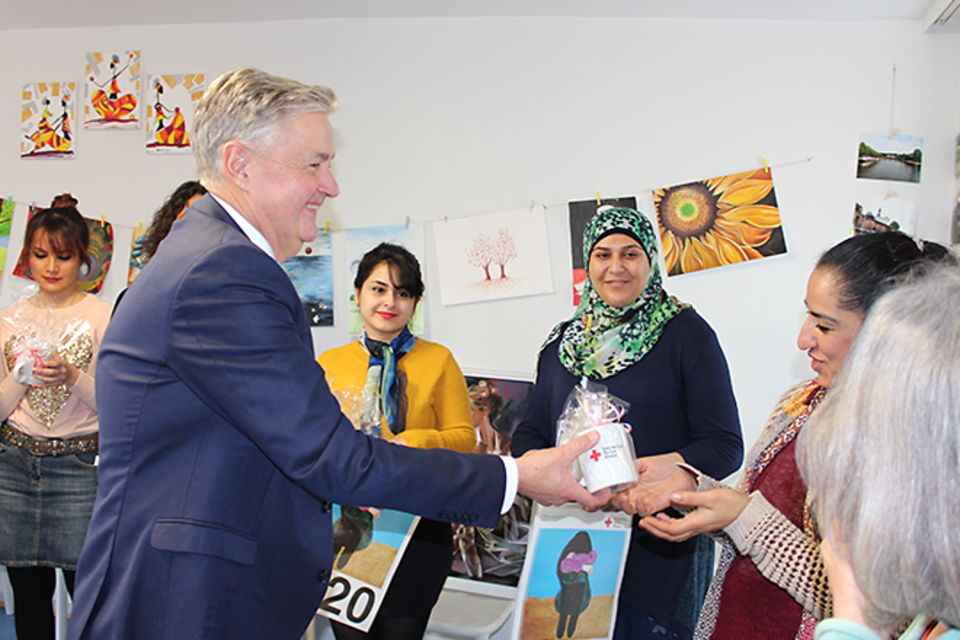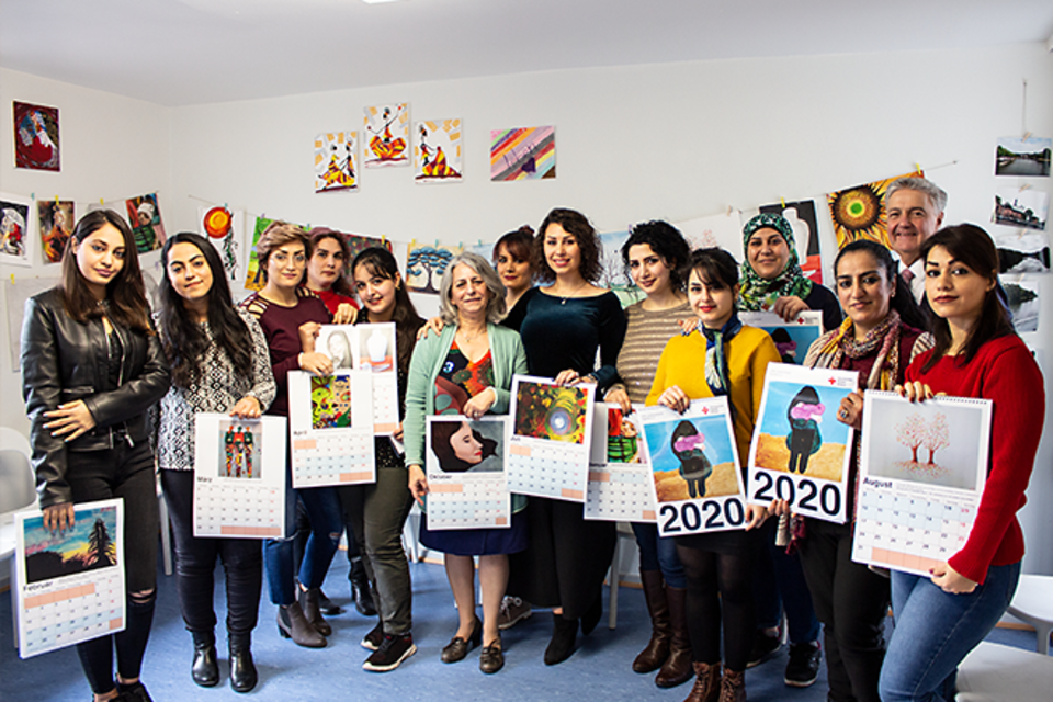 Aus ausgewählten Kunstwerken wurde ein Kalender für das kommende Jahr zusammengestellt, der den Frauen am 17.12.2019 durch Michael Burkert, Präsident des DRK-Landesverband Saarland, in Lebach überreicht wurde.