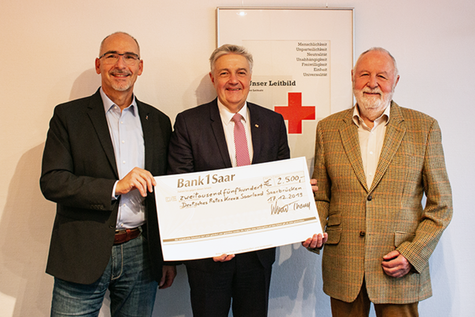 In diesem Jahr wurde auch der DRK-landeverband Saarland mit einer Spende von 2.500 € durch den Greenburner e.V. unterstützt. Übergeben wurde diese durch Eberhard Müller, Präsident des Greenburner e.V., und Thomas Kliebenstein, Kassenwart des Greenburner e.V., an Michael Burkert, Präsident des DRK-Landesverbandes Saarland.