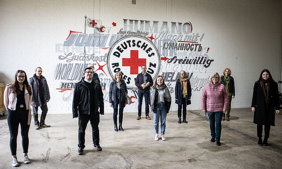 Junge Menschen im Gespräch mit Rotkreuzlerinnen und Rotkreuzlern aus Nordrhein, Rheinland-Pfalz, dem Saarland und Westfalen-Lippe.